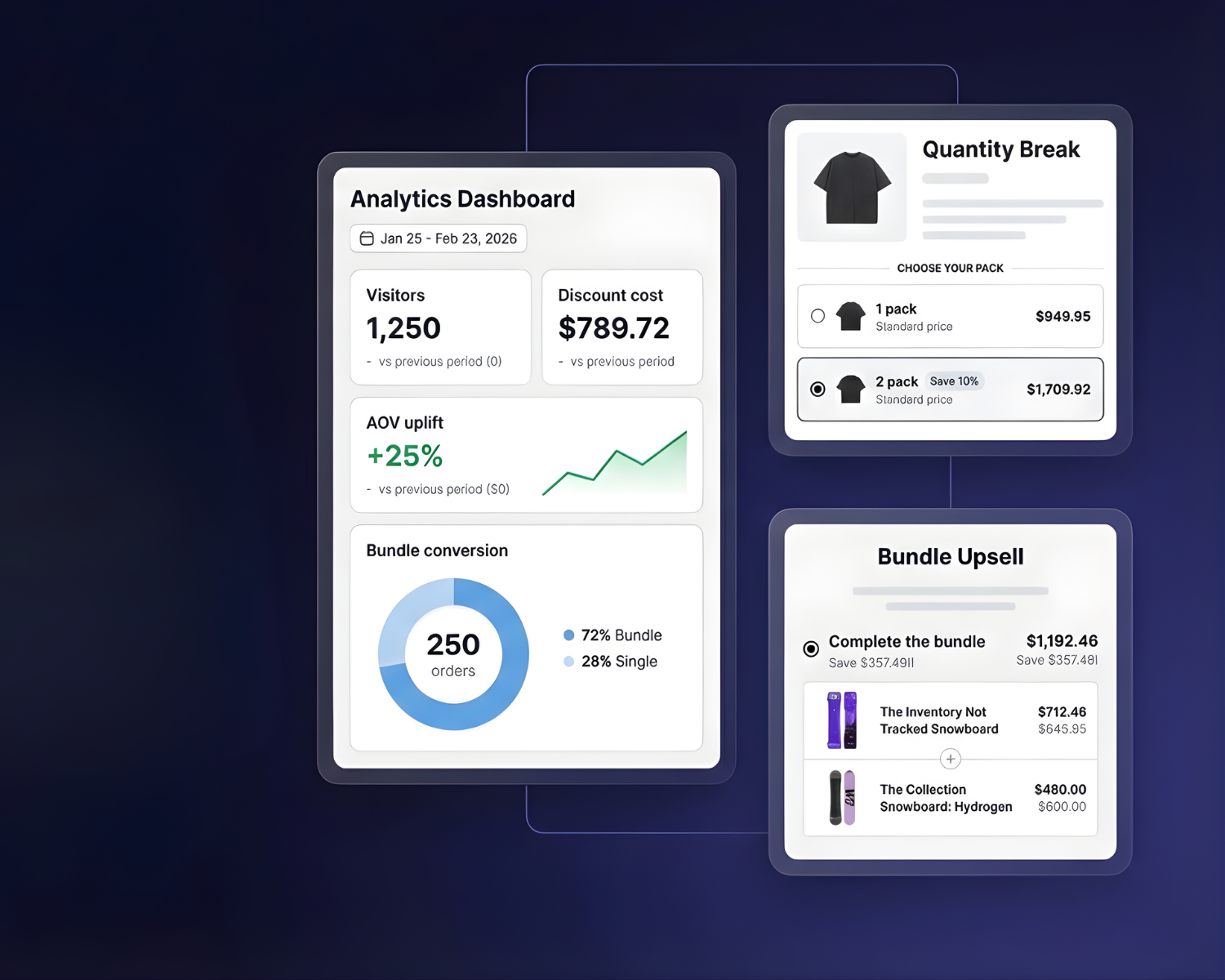 Create quantity breaks, BOGO deals, upsells, and gift offers from your Shopify admin - without custom theme work.